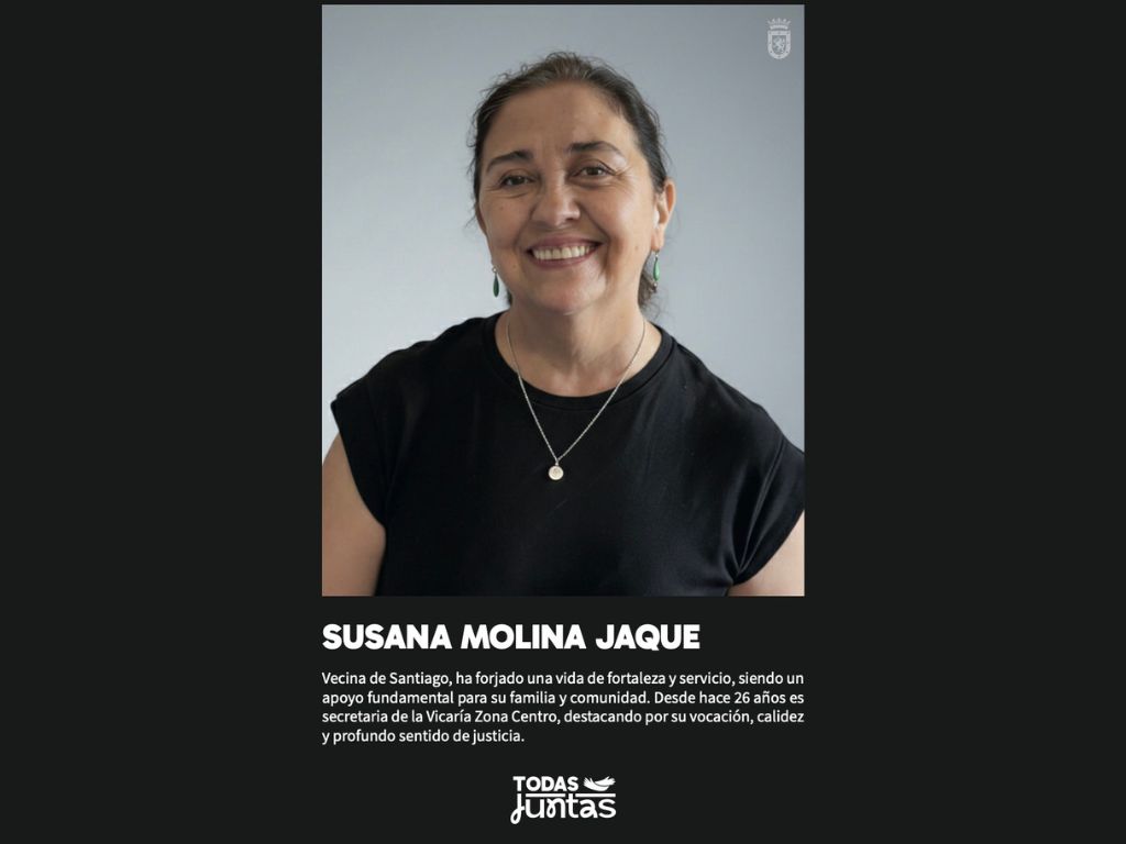 La Municipalidad de Santiago destacó a 25 mujeres de la comuna por su aporte a la vida social y comunitaria. Entre ellas se encuentra Susana Molina, secretaria de la Vicaría Zona Centro, cuyo servicio cotidiano es testimonio de entrega y cercanía.