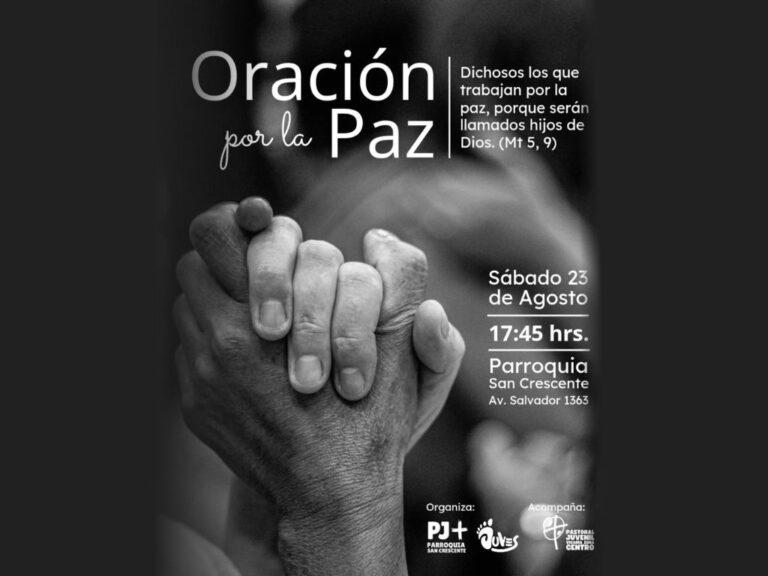 En ese contexto, las pastorales juveniles del Decanato Salvador realizarán la «Oración por la paz» el sábado 23 de agosto a las 17:45 horas, en la Parroquia San Crescente, Av. Salvador #1363.
